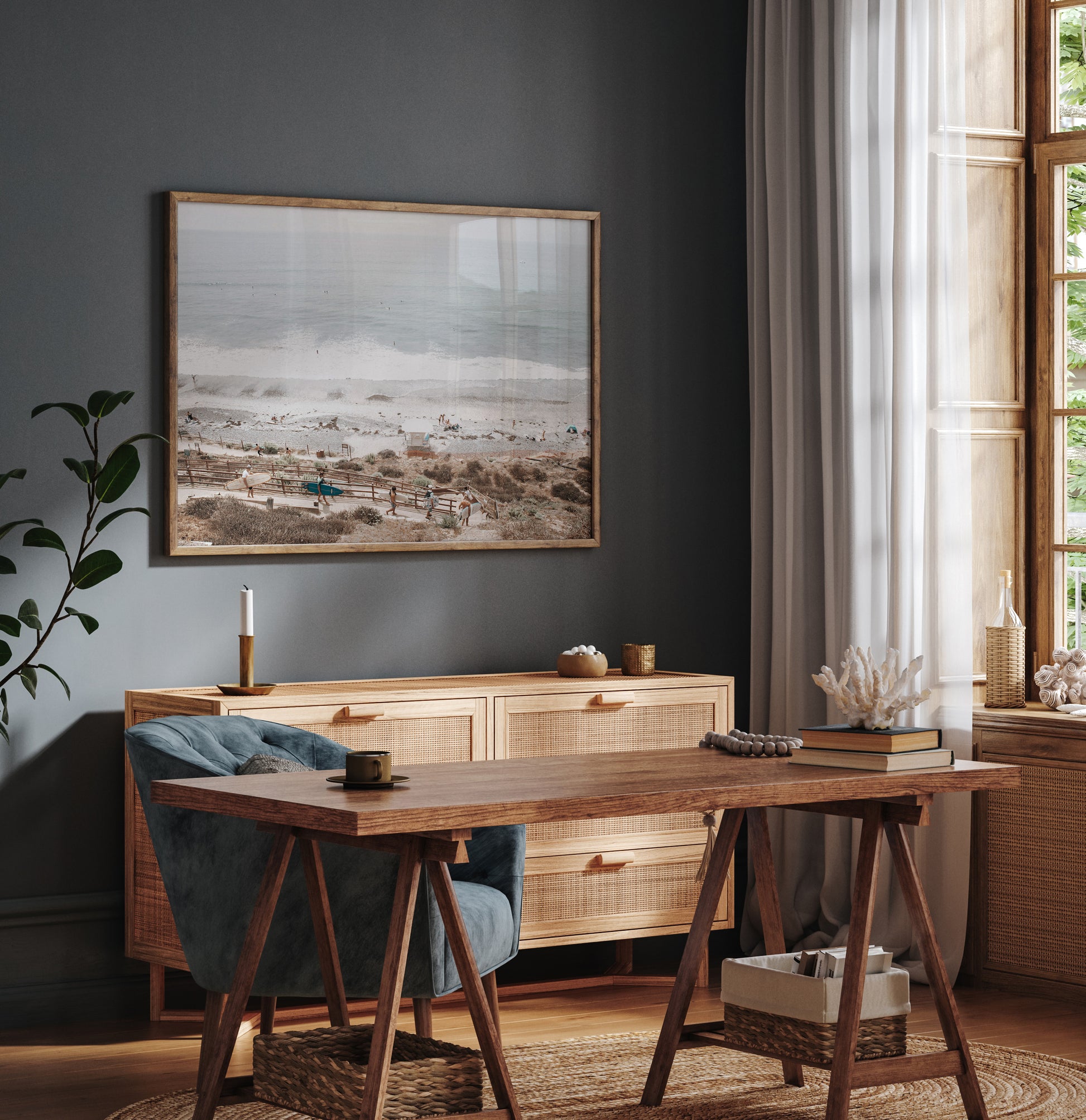 Framed Prints: Our frames are hand crafted in Costa Mesa, California and made with solid wood moldings imported from Italy. Shipped art comes with museum-grade acrylic glass. Local pick-up orders will have real glass (for sizes up to 24x36) unless acrylic is specifically requested. Frames are solid wood and come in white, black, or natural white oak. Ready to hang upon delivery.