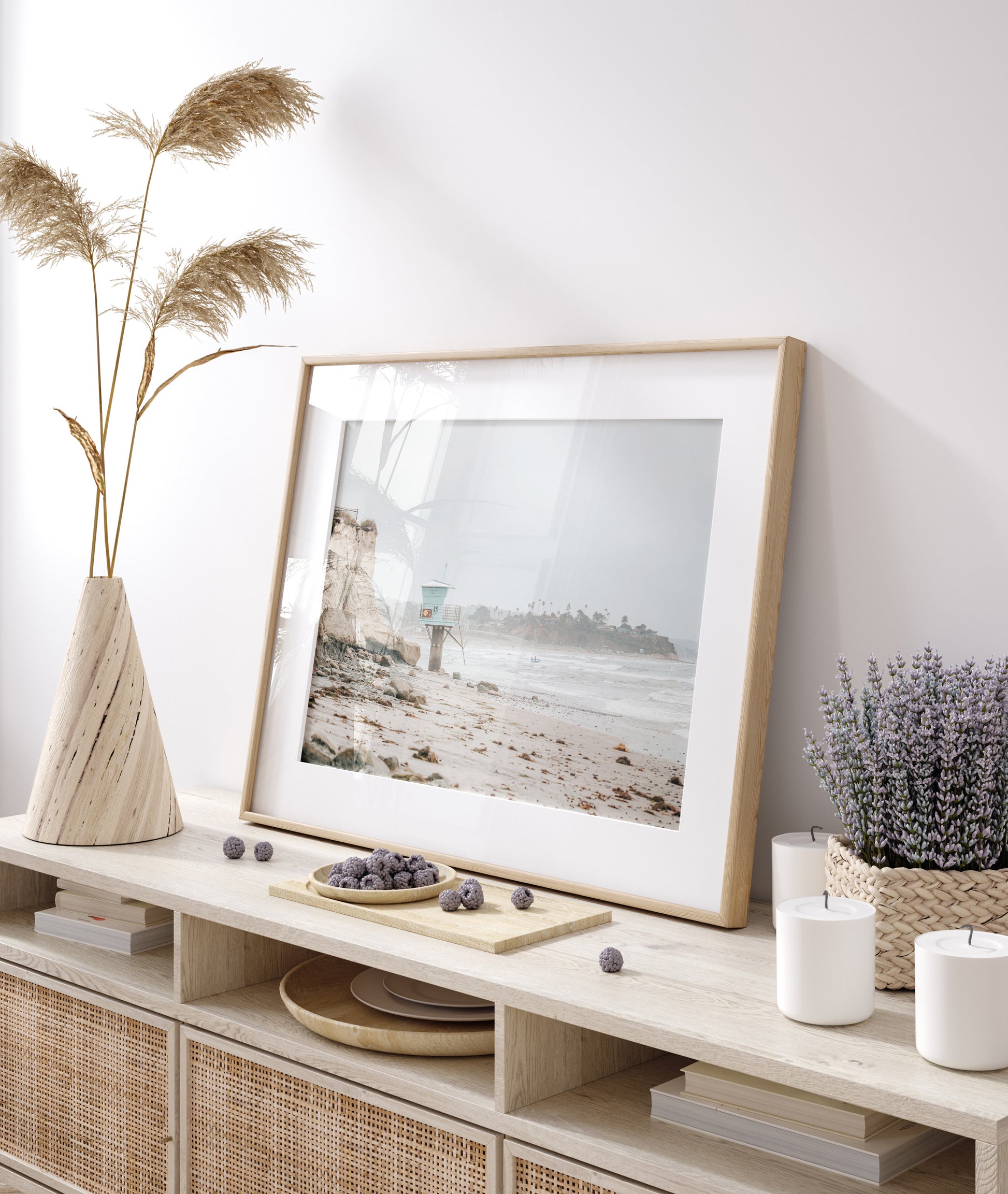 Framed Prints: Our frames are hand crafted in Costa Mesa, California and made with solid wood moldings imported from Italy. Shipped art comes with museum-grade acrylic glass. Local pick-up orders will have real glass (for sizes up to 24x36) unless acrylic is specifically requested. Frames are solid wood and come in white, black, or natural white oak. Ready to hang upon delivery.