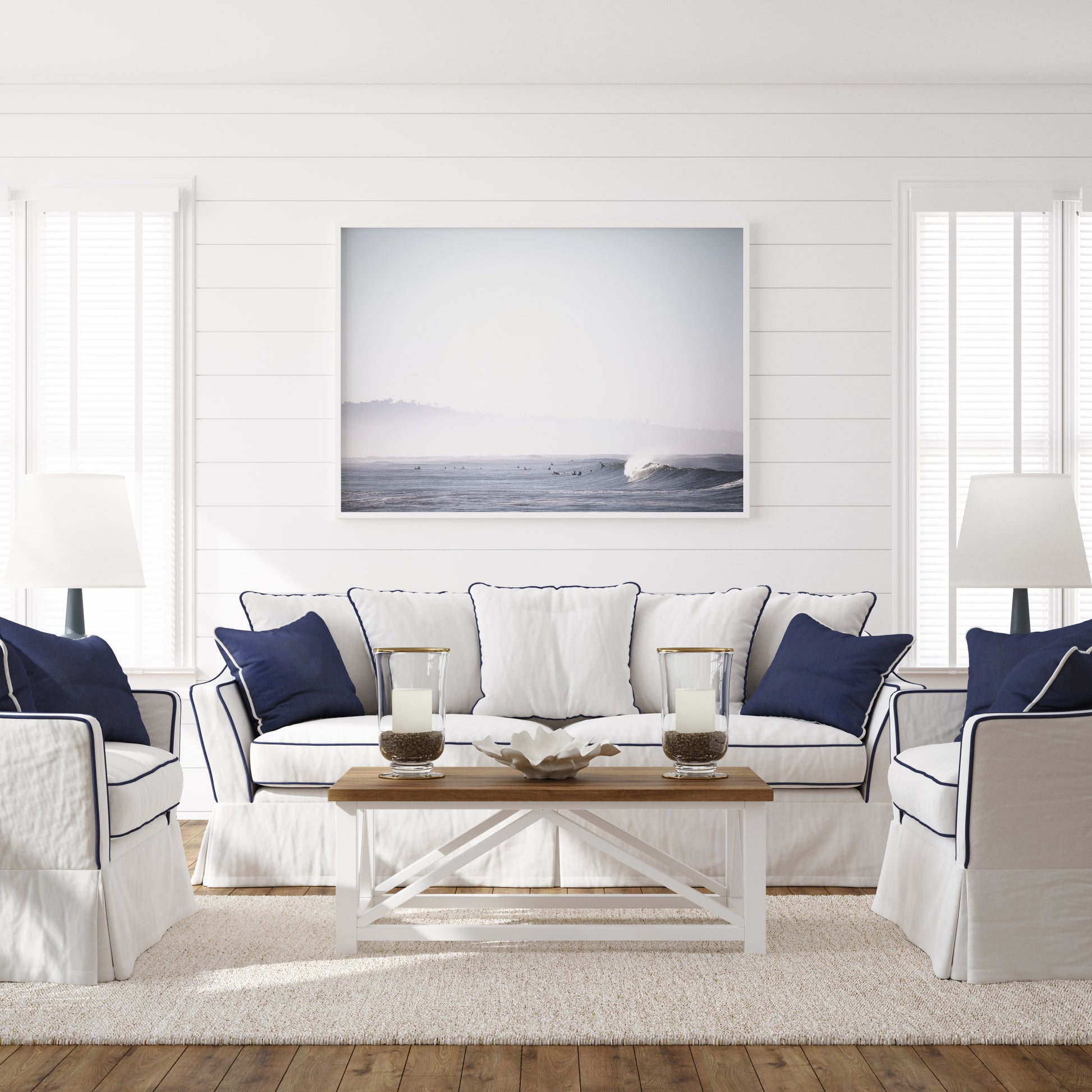 Framed Prints: Our frames are hand crafted in Costa Mesa, California and made with solid wood moldings imported from Italy. Shipped art comes with museum-grade acrylic glass. Local pick-up orders will have real glass (for sizes up to 24x36) unless acrylic is specifically requested. Frames are solid wood and come in white, black, or natural white oak. Ready to hang upon delivery.