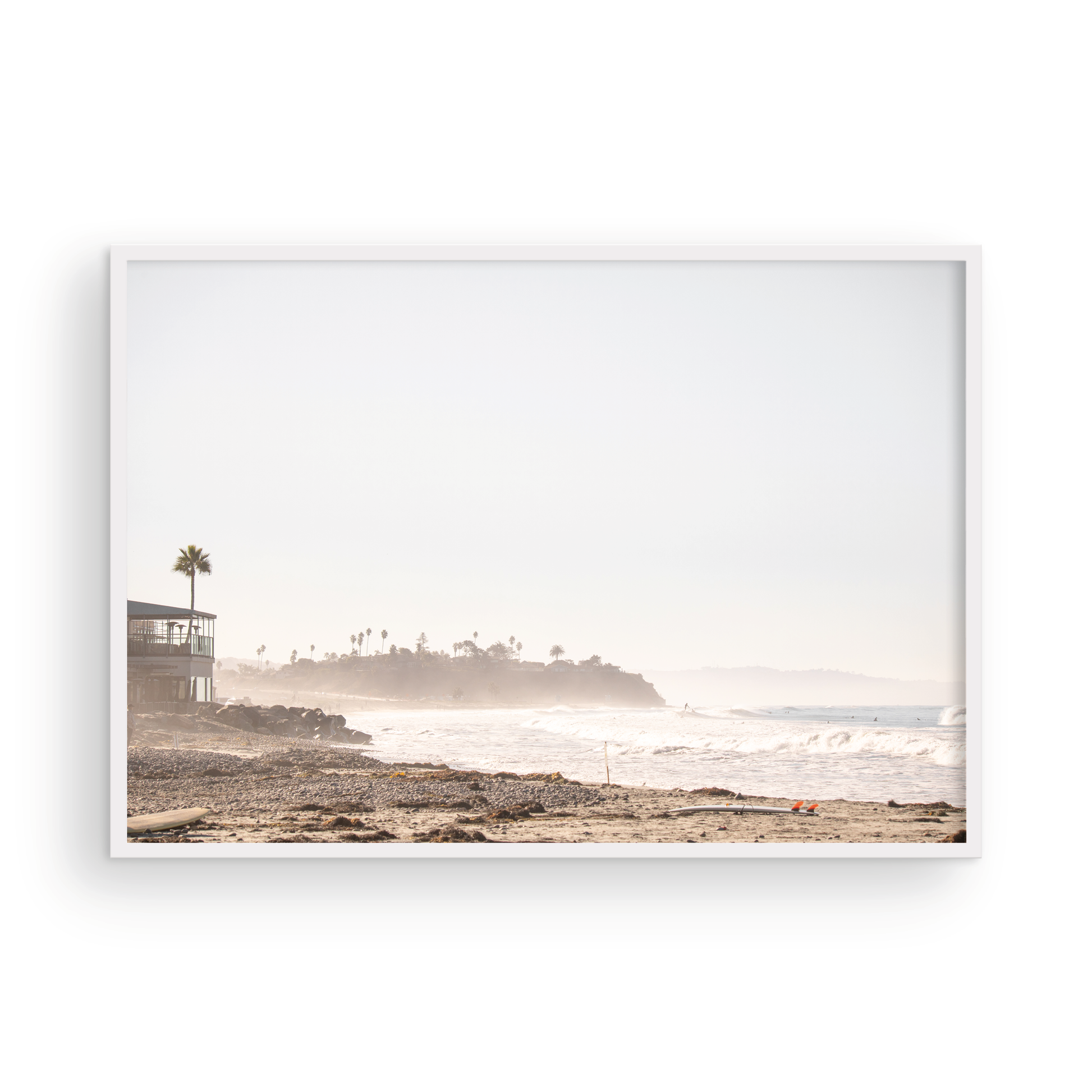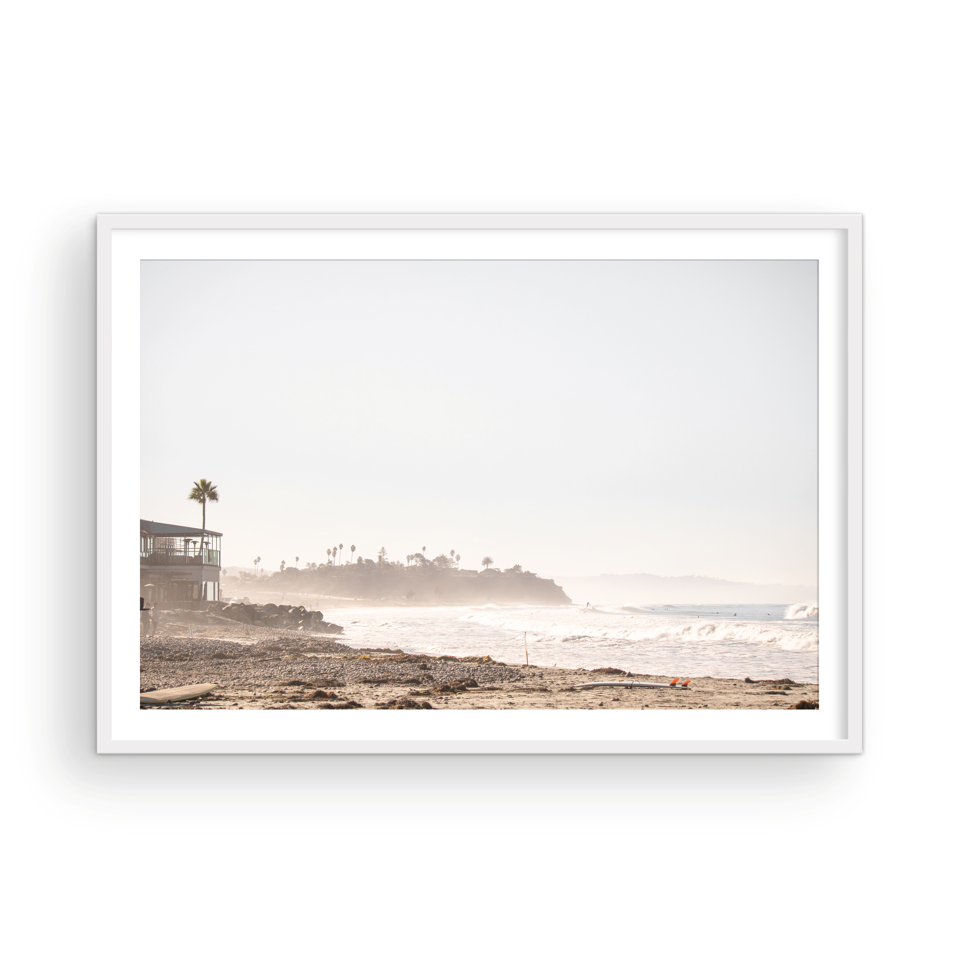 Framed Prints: Our frames are hand crafted in Costa Mesa, California and made with solid wood moldings imported from Italy. Shipped art comes with museum-grade acrylic glass. Local pick-up orders will have real glass (for sizes up to 24x36) unless acrylic is specifically requested. Frames are solid wood and come in white, black, or natural white oak. Ready to hang upon delivery.