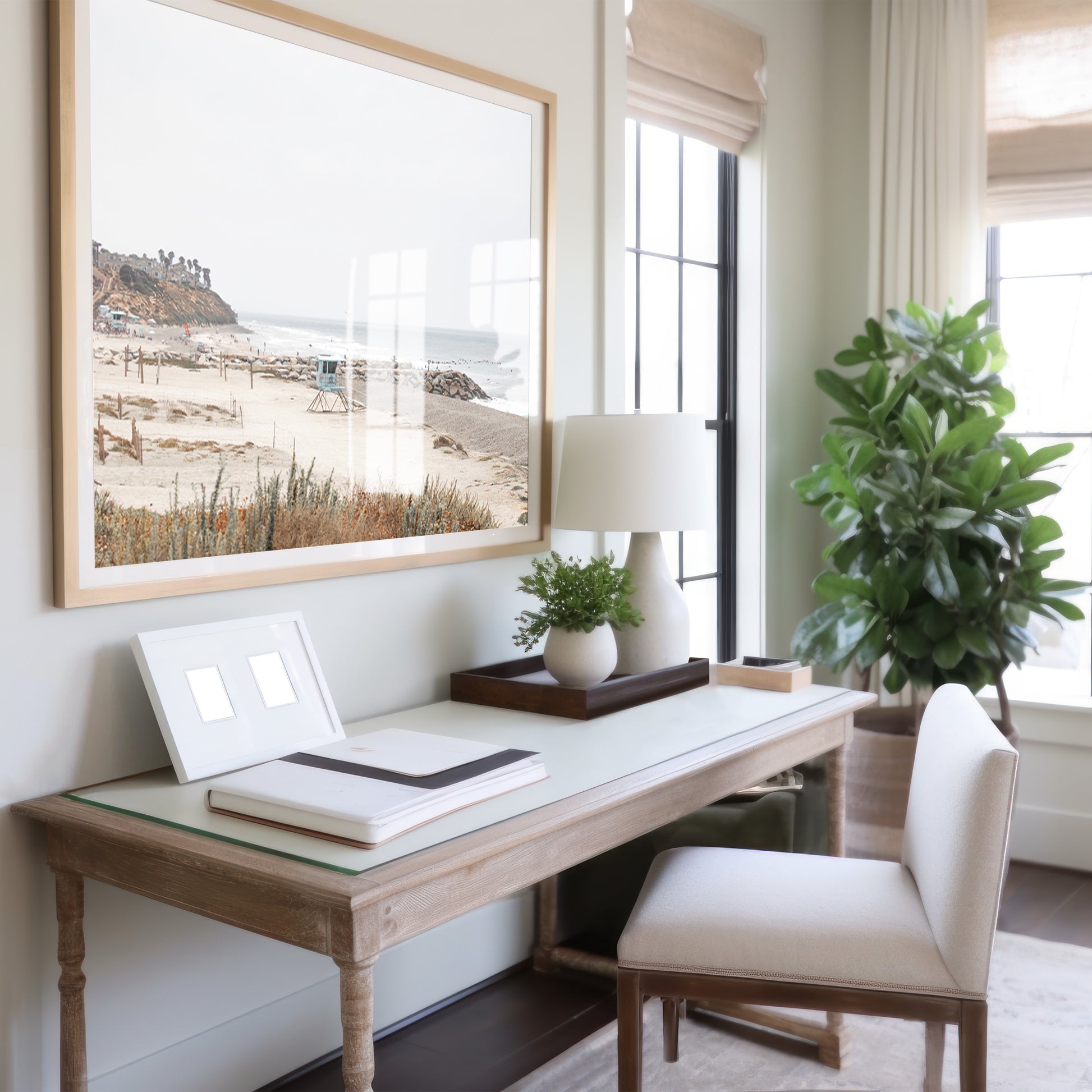 Framed Prints: Our frames are hand crafted in Costa Mesa, California and made with solid wood moldings imported from Italy. Shipped art comes with museum-grade acrylic glass. Local pick-up orders will have real glass (for sizes up to 24x36) unless acrylic is specifically requested. Frames are solid wood and come in white, black, or natural white oak. Ready to hang upon delivery.