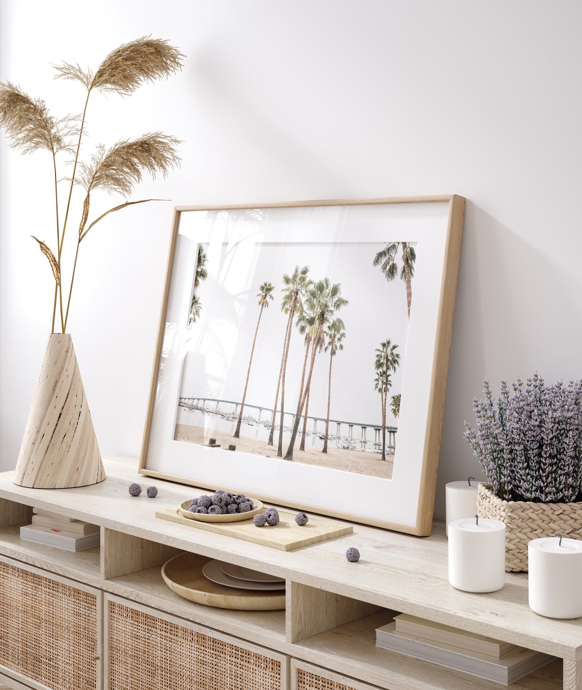 Our fine art giclee prints are showcased in a beautiful wood frame imported from Italy. Every piece is made to order in Costa Mesa, California.