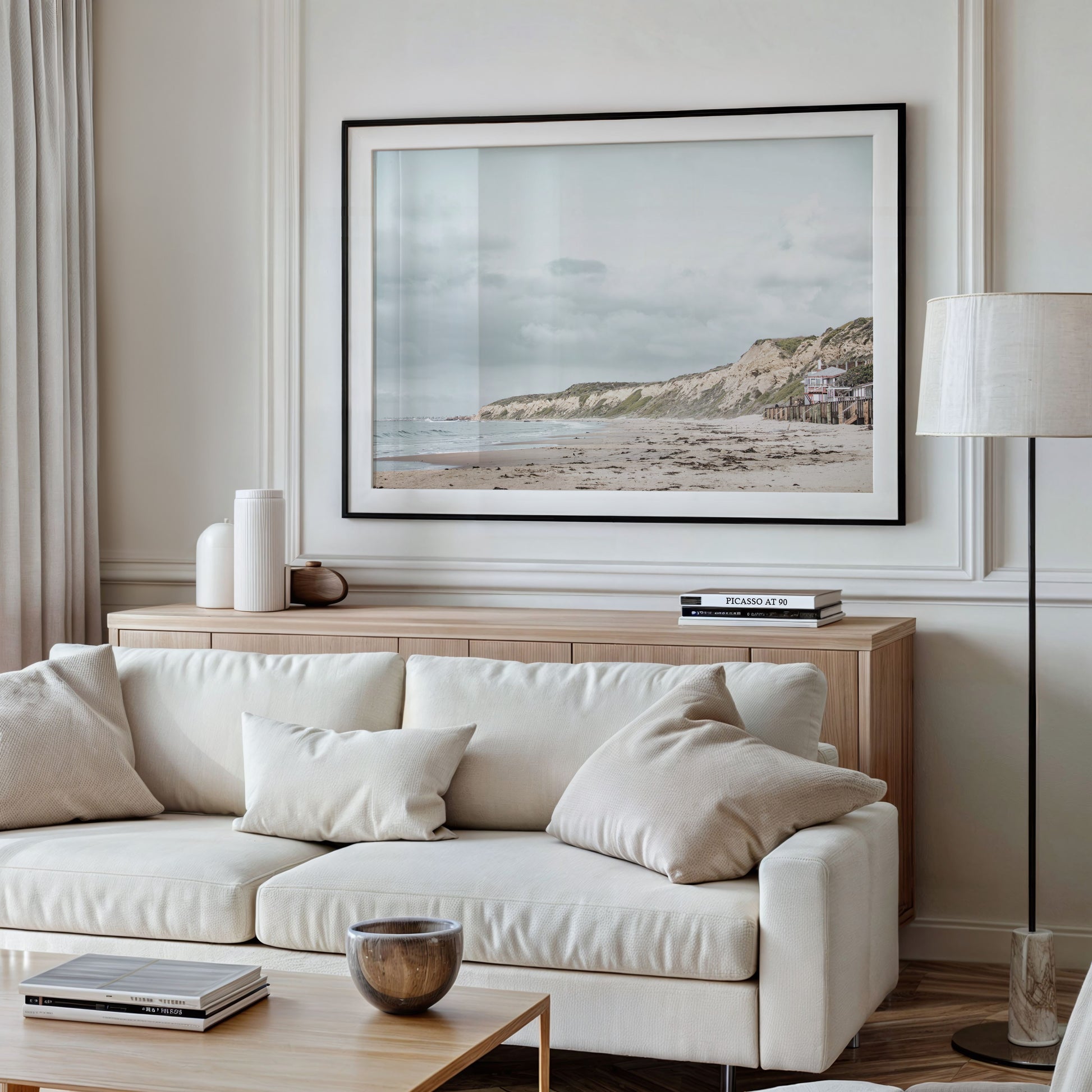 Framed Prints: Our frames are hand crafted in Costa Mesa, California and made with solid wood moldings imported from Italy. Shipped art comes with museum-grade acrylic glass. Local pick-up orders will have real glass (for sizes up to 24x36) unless acrylic is specifically requested. Frames are solid wood and come in white, black, or natural white oak. Ready to hang upon delivery.
