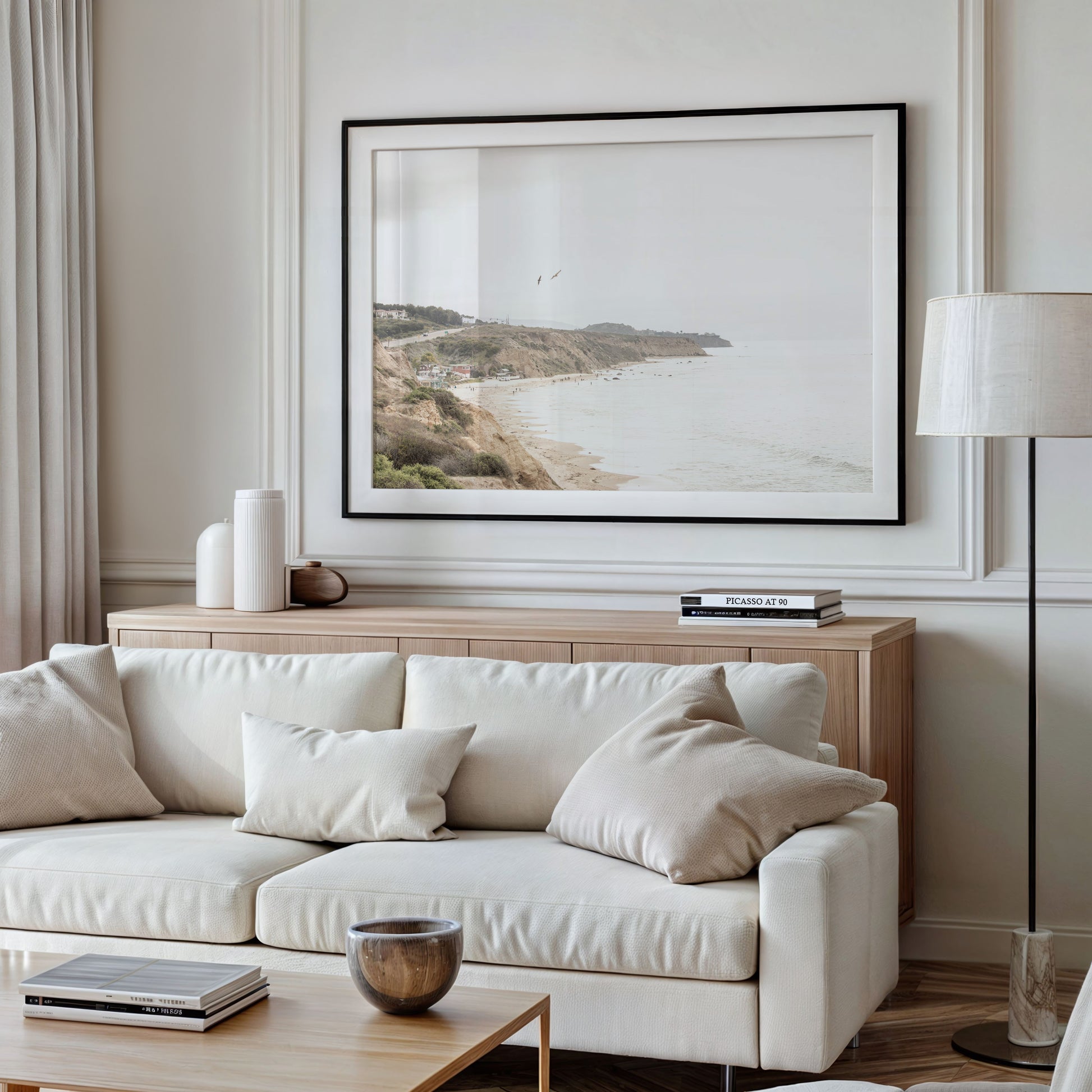 Framed Prints: Our frames are hand crafted in Costa Mesa, California and made with solid wood moldings imported from Italy. Shipped art comes with museum-grade acrylic glass. Local pick-up orders will have real glass (for sizes up to 24x36) unless acrylic is specifically requested. Frames are solid wood and come in white, black, or natural white oak. Ready to hang upon delivery.