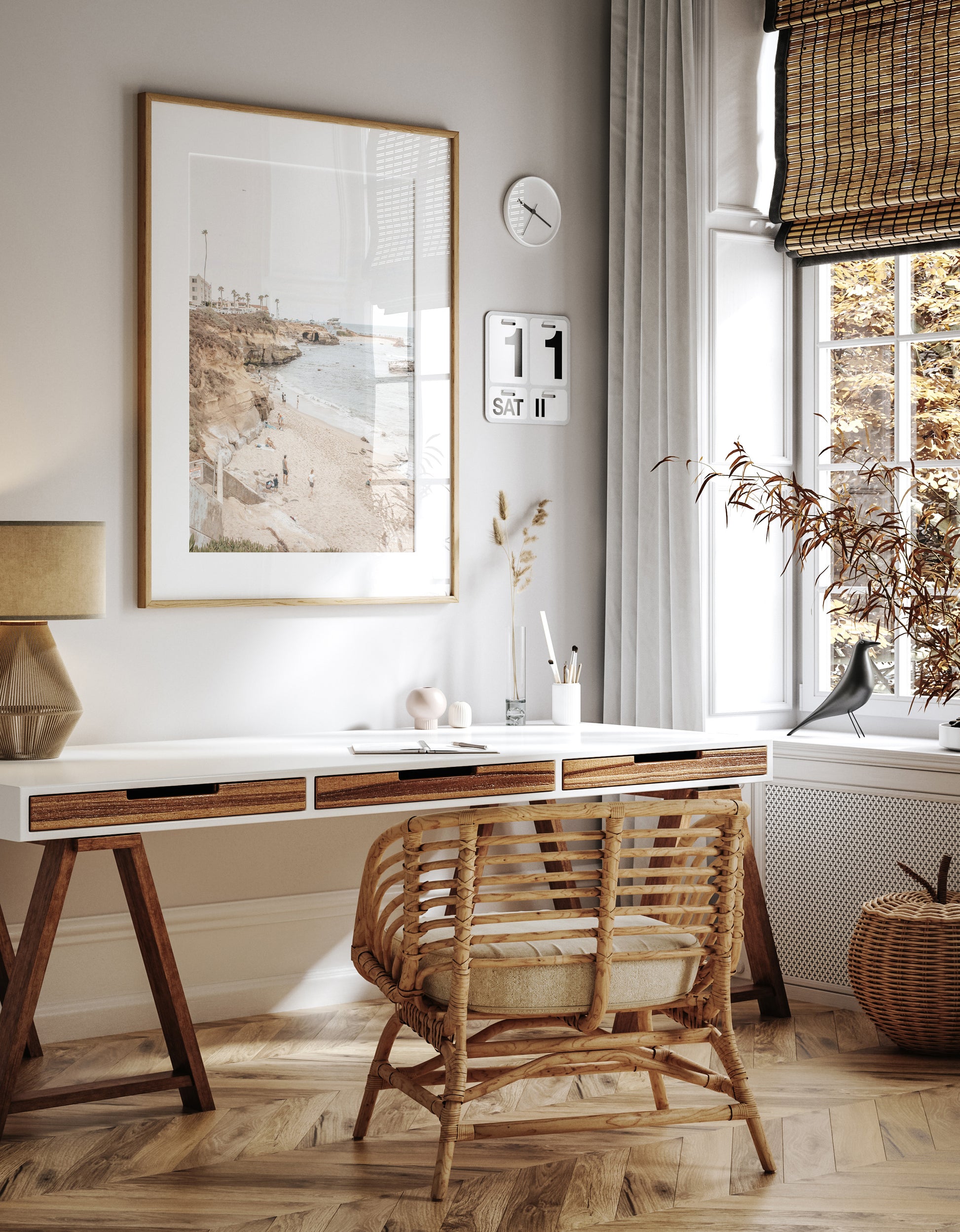 Framed Prints: Our frames are hand crafted in Costa Mesa, California and made with solid wood moldings imported from Italy. Shipped art comes with museum-grade acrylic glass. Local pick-up orders will have real glass (for sizes up to 24x36) unless acrylic is specifically requested. Frames are solid wood and come in white, black, or natural white oak. Ready to hang upon delivery.