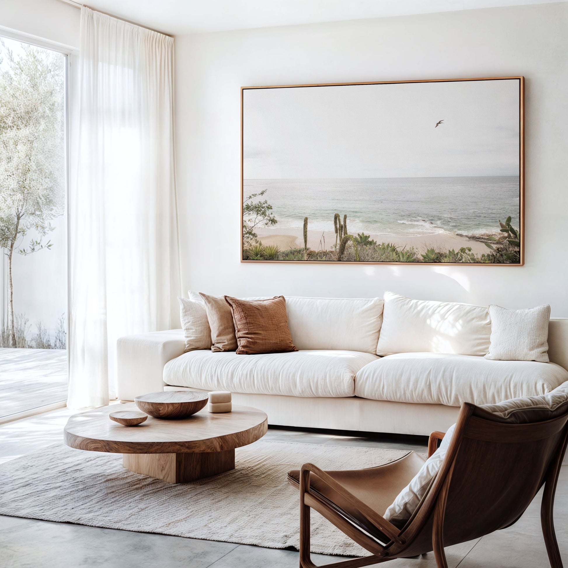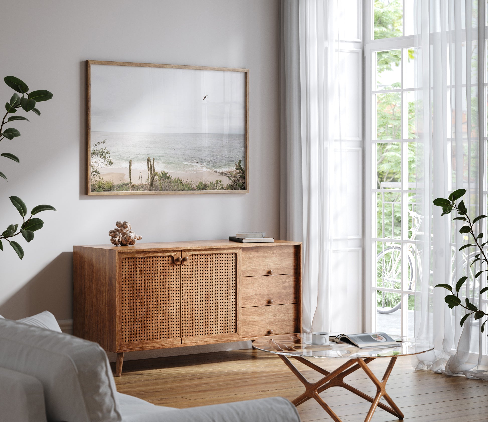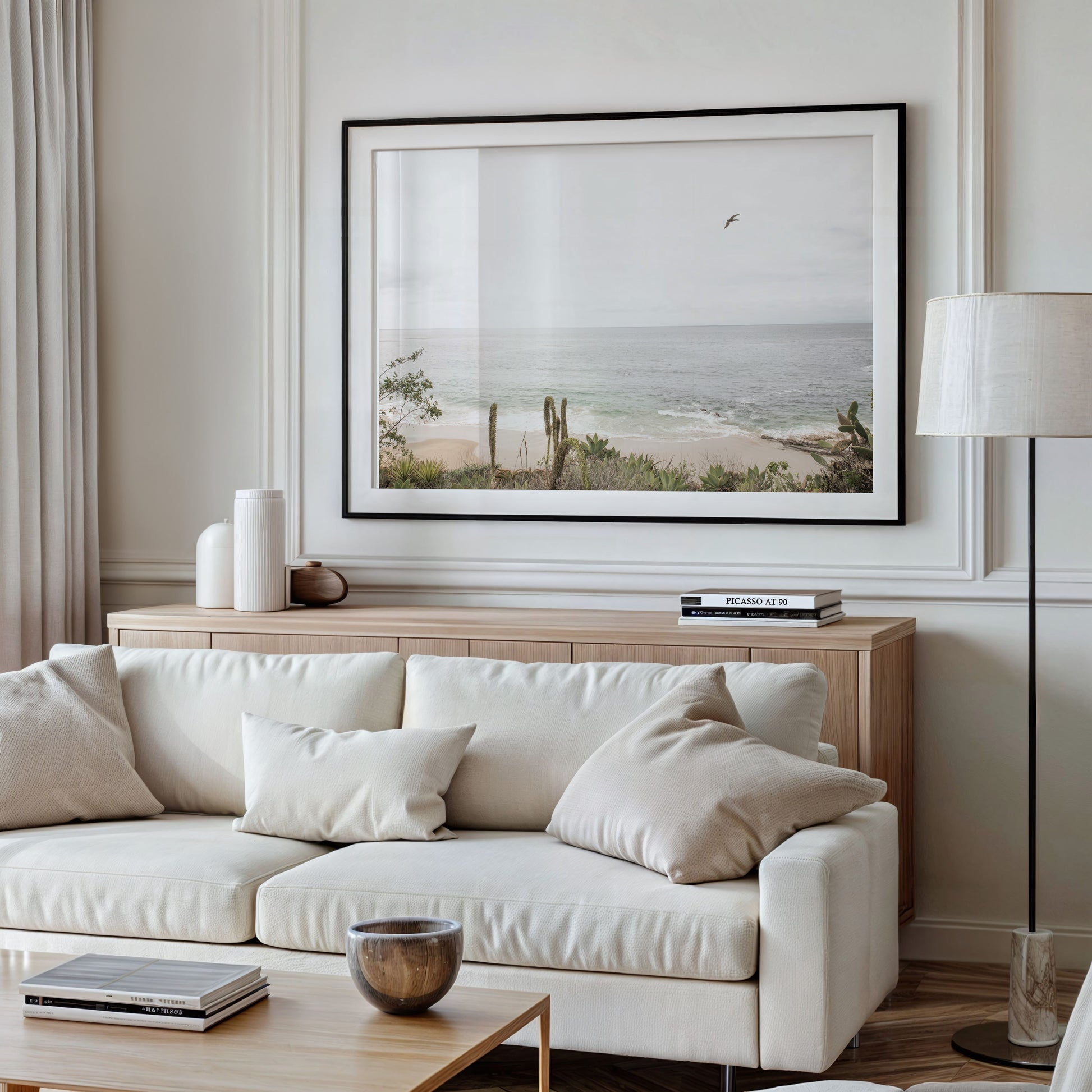 Framed Prints: Our frames are hand crafted in Costa Mesa, California and made with solid wood moldings imported from Italy. Shipped art comes with museum-grade acrylic glass. Local pick-up orders will have real glass (for sizes up to 24x36) unless acrylic is specifically requested. Frames are solid wood and come in white, black, or natural white oak. Ready to hang upon delivery.