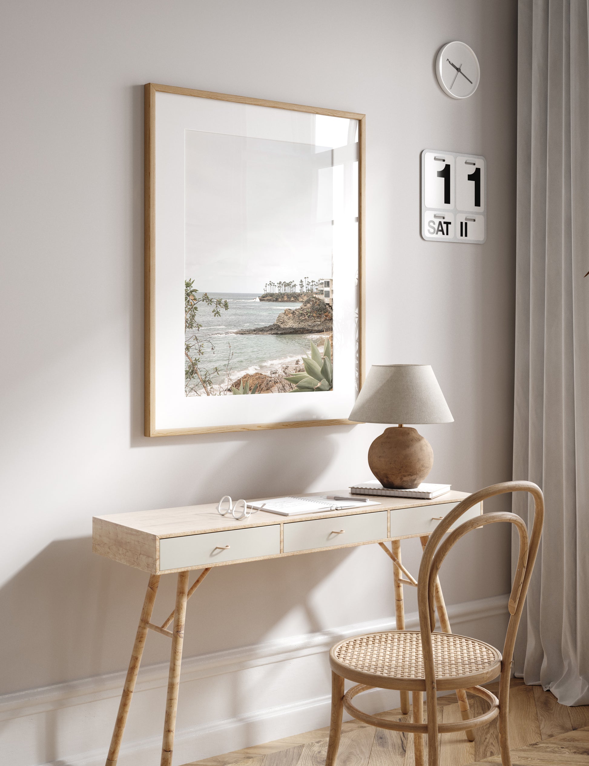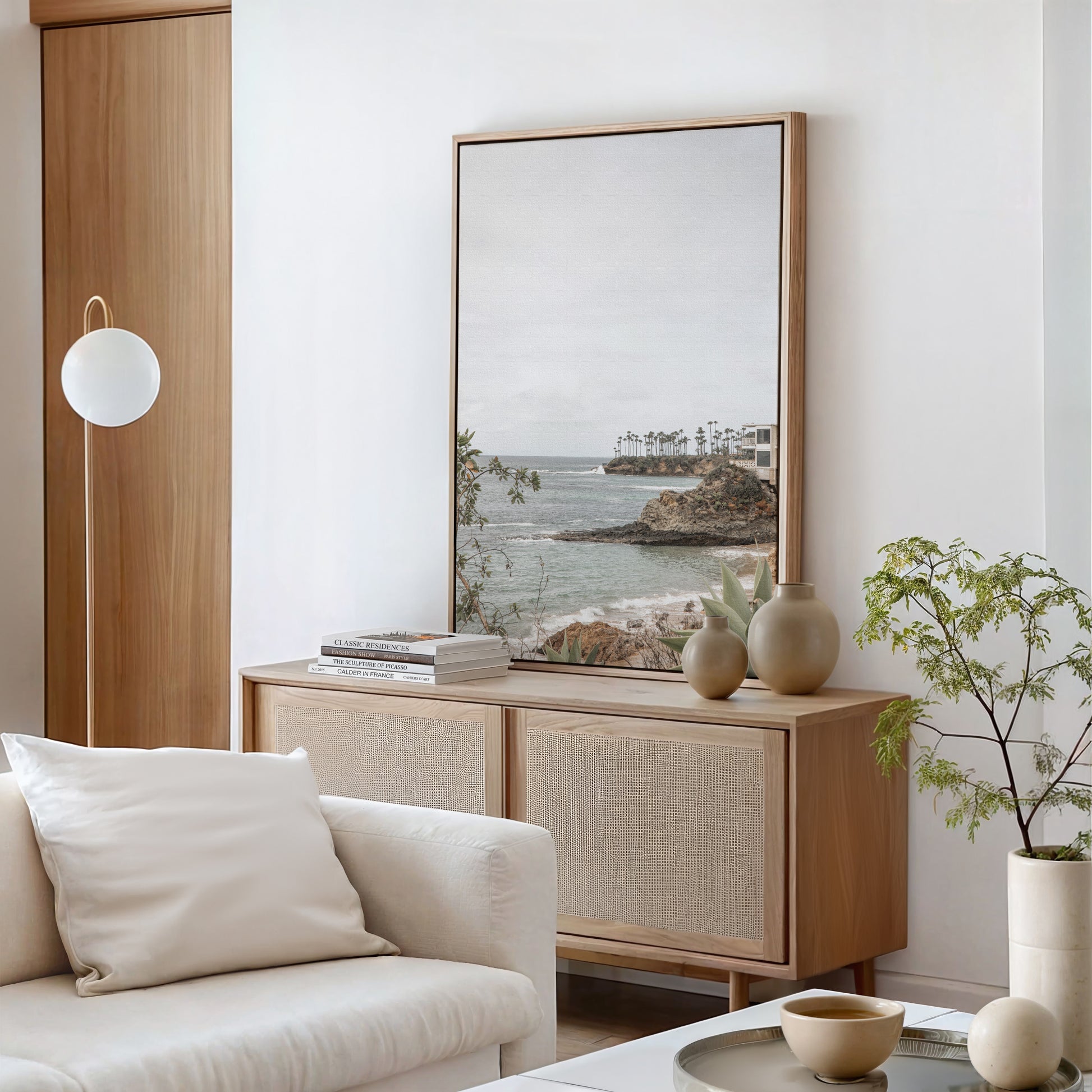 Framed Prints: Our frames are hand crafted in Costa Mesa, California and made with solid wood moldings imported from Italy. Shipped art comes with museum-grade acrylic glass. Local pick-up orders will have real glass (for sizes up to 24x36) unless acrylic is specifically requested. Frames are solid wood and come in white, black, or natural white oak. Ready to hang upon delivery.