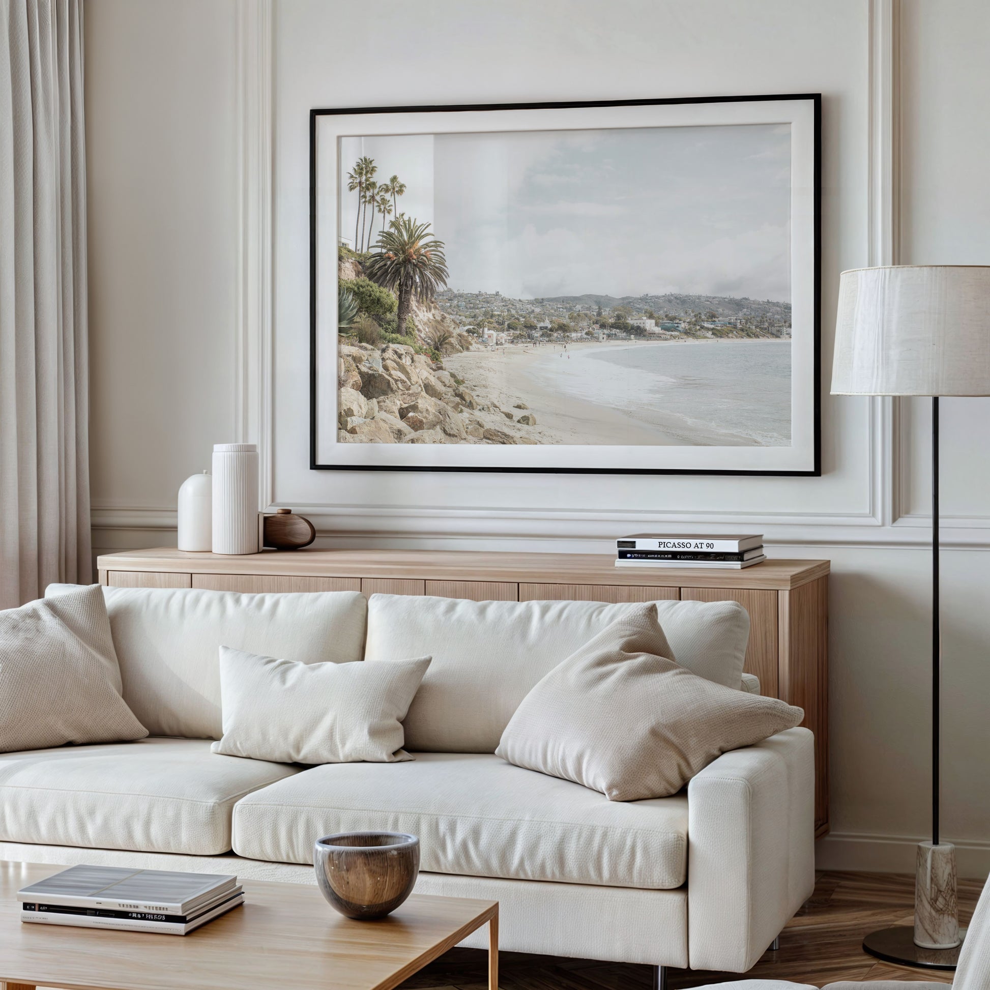 Our fine art giclee prints are showcased in a beautiful wood frame imported from Italy. Every piece is made to order in Costa Mesa, California.
